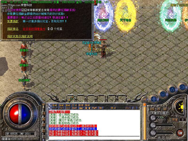 13、滴血皇宫:进入不需要元宝!只要50w金币!玩家可能会觉得好多地图都需要金币,是不是金币很难打!我可以告诉大家,只要你到达35级就能获得一个金条!