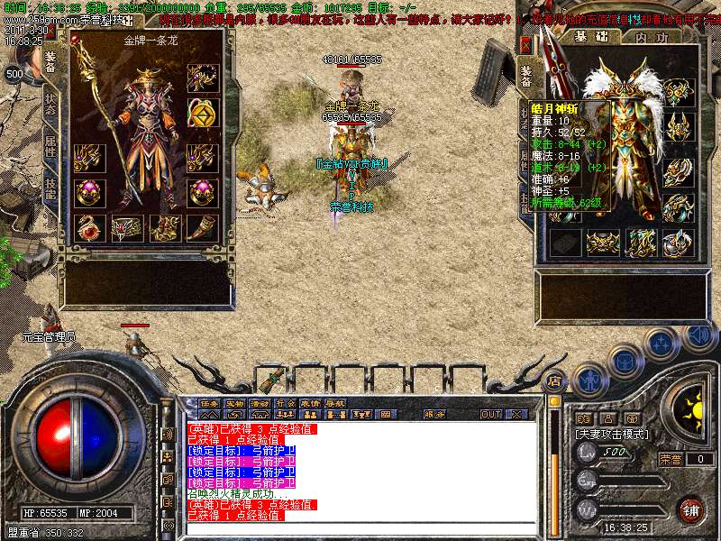 10、装备升级:升级需要《升级宝石》,升级宝石由怪物爆出!每次升级的成功率在20%左右,项链幸运只有10%,而且只有记忆、白虎、灯笼可以加幸运!严格控制装备属性,绝不变态!本服取消套装属性,注重装备的极品属性!这样意味着极品祖玛可能比黄金装备还牛!