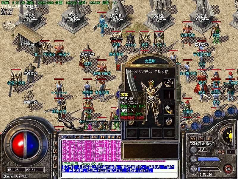 <255,252> 比奇皇宫每半小时刷一个精品战士爆所有装备欢迎前去屠魔