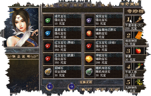 [244] 天下第一在商铺里消费东西可以享受到8折优惠,即10元宝的物品只要花8元宝。而且还相应的得到商铺积分,并且积分还可以兑换很多的物品。一次购买两次消费!