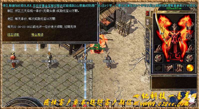 【攻沙奖励】: 开区三天后开始攻沙 新区攻沙奖励12万元宝 老区攻沙奖励10万元宝[56]特别提示:在每天的下午3点,6点,晚上10点,12点会开放武器专爆地图!可爆王者武器和元宝!进入地图需要赌筛子才可以进入!具体情况自己去体验!