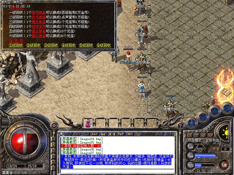 各种宝箱都可以开出超高经验及顶级装备!为考虑战士和道士玩家练级难的问题!特在盟重卧龙笔记旁放置神秘宝藏,可以开出大量经验!战士道士升级不再是难题!!