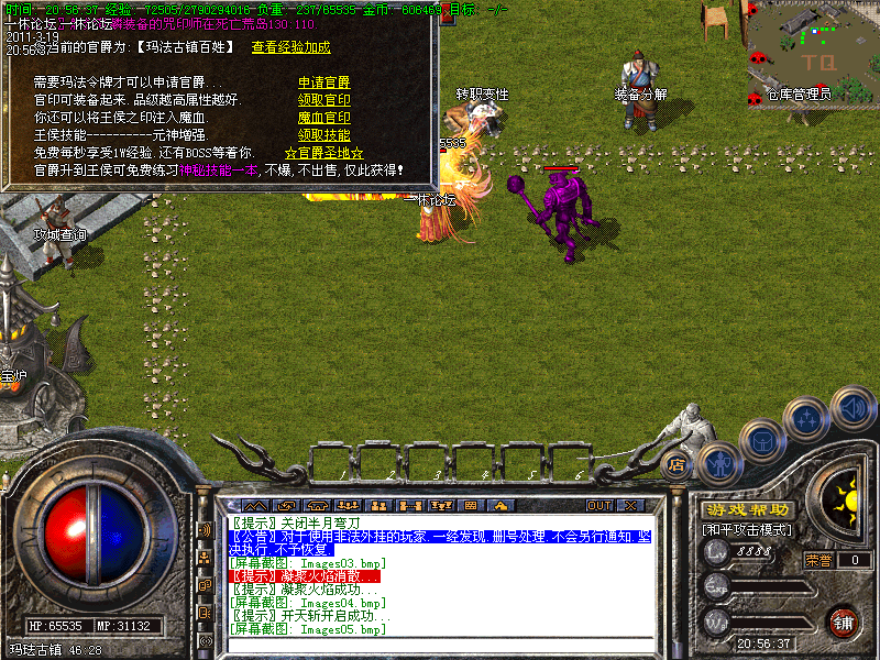 【官职系统】:在游戏中可以打到天晴令牌晋升官街封号,晋升后可以激发人物多倍经验状态.