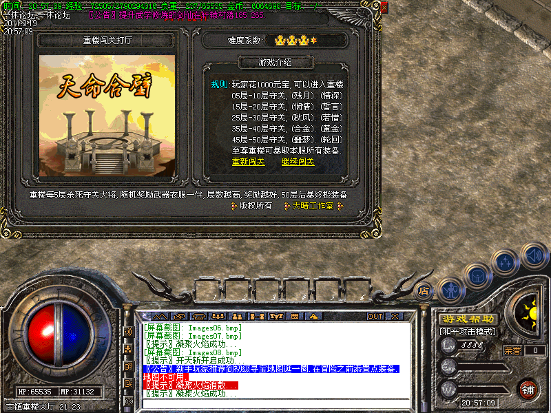 【装备战略】:开放游戏的行会战功能,增加排队PK赌元宝功能,增加上古劫阵.........