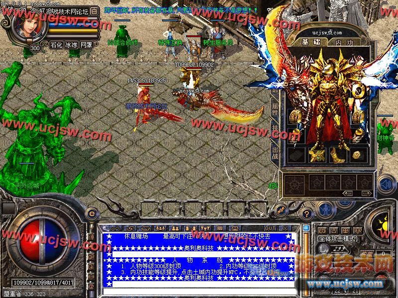 - ☉ V8引擎传奇端游【荒域专属单职业九大陆】Win一键端+配套补丁网站+架设教程