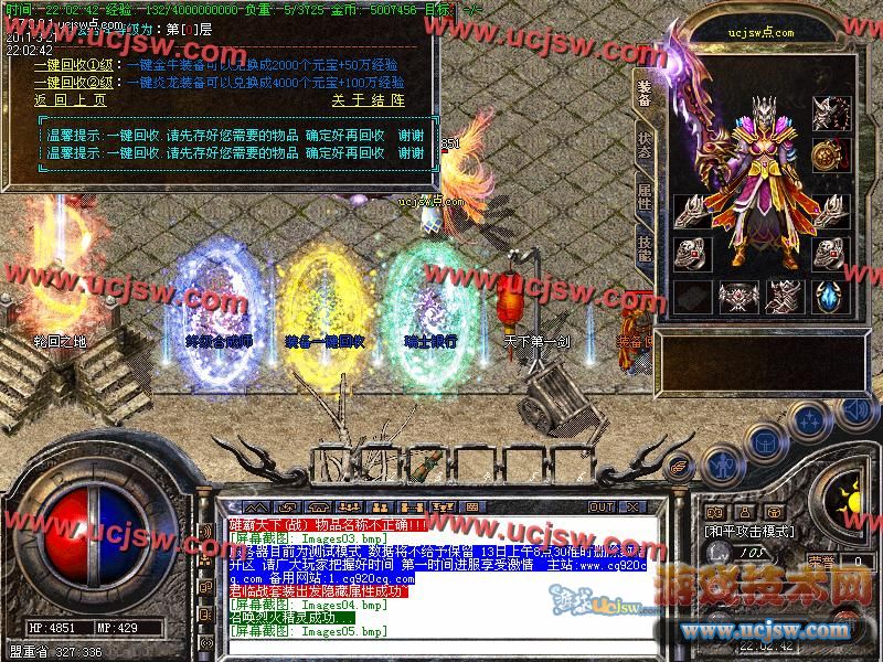 【特色功能】:本服务器独家增加雄霸武器,雄霸衣服,只需用炎龙装备合成无须购买。