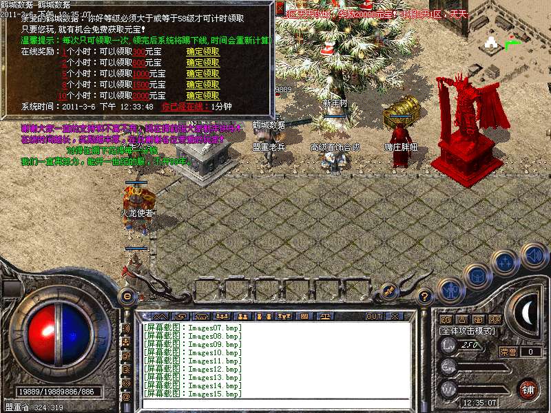 [255,56]欢迎进入<$SERVERNAME>,,网站- 刚刚更新一棵奖励元宝的新年树,每一位都能领取大量元宝!游戏特色:本F无道盾 ,无GM,无内功,无连击!!! 结婚请找姻缘神殿的月老,@求婚@夫妻传送@召唤伴侣。新区开区后第4天晚上8点攻沙,新区第一任城主奖励40000元宝,老区天天攻城,奖励20000元宝!本服2天1区,天天合区,保证激情!!游戏网站: 充值时请从该网站充值,其它网站一律为骗子, 本F永不出售装备,等级。元宝比例:1元=400元宝,使用点卡充值赠送50%,银行汇款赠送100%!支持骏网一卡通、盛大一卡通、征途游戏卡、手机充值卡等多种方式,详情请到官方网站了解! 地下神殿4层出新技能书,由终极破面和终极秒人皇帝暴,暴率极高.本服狂雷装备由富贵庄主,超级秒人霸王,独孤求败爆出,鹤城套装由鹤城天堂;张无忌;周芷若爆出!【冲级奖励】(系统自动送出,注意包裹空位)[48级奖励:20元宝] [50级奖励:屠龙系列装备][52级奖励:战神项链系列][54级奖励:200元宝][56级奖励:开天级别武器][58级奖励:星王衣服一件,60级奖励:星王之刃一把,61奖励(狂战.狂魔.狂道 按职业分配)][62、63各奖励狂雷级别戒指一个,64、65各奖励狂雷级别护腕一个,66奖励狂雷级别头盔一个,67级奖励狂雷级别项链一条][68级送星王斗笠一个][69送玄铁衣服一件(按男女分配)][70送玄铁武器一把]