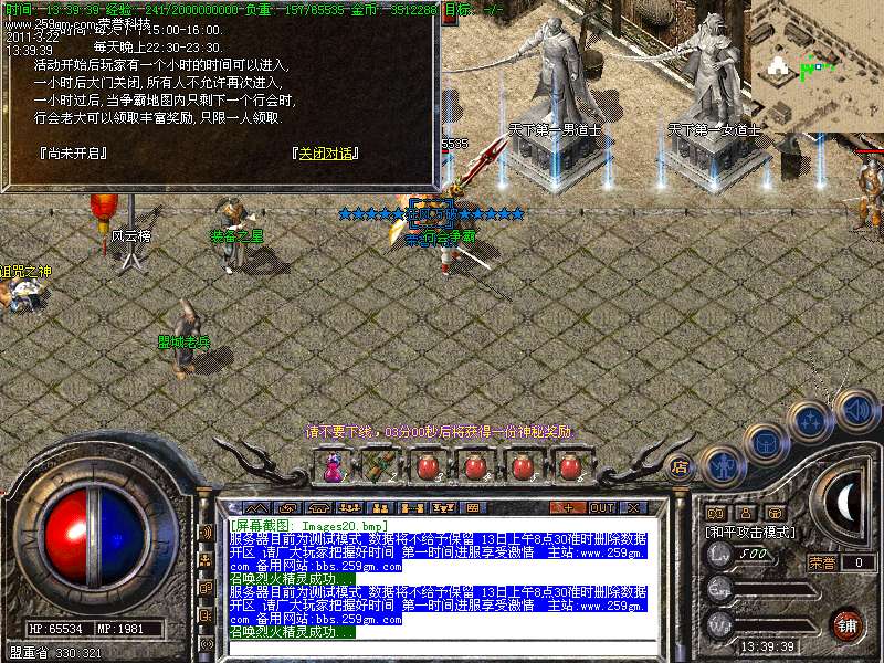 系统每天下午15点00准时开放天下第一争霸胜利者可获得终极武器!