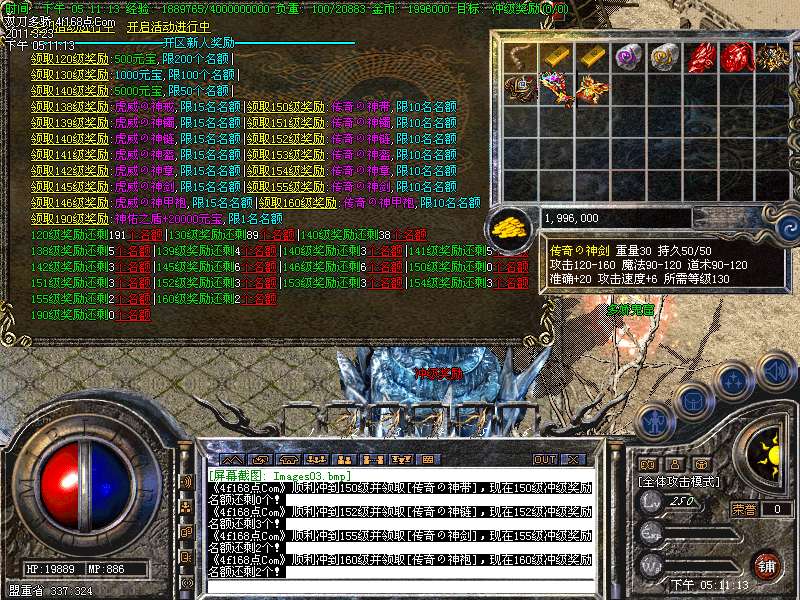 冲级奖励:90级开始不停的奖励。虎威,传奇套装奖不停,名额多多