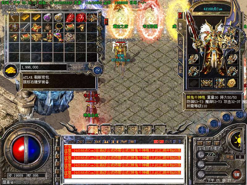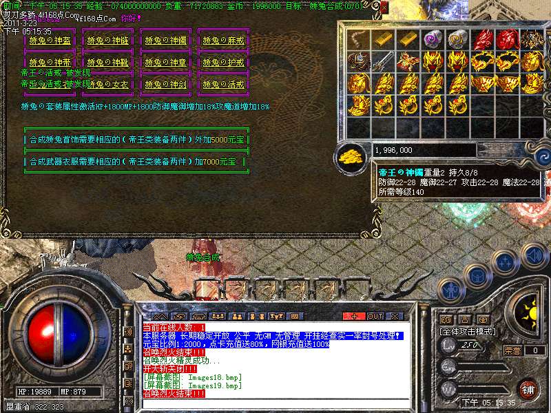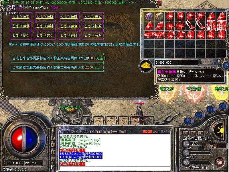装备合成:本服所有装备全部采用合成系统,全部二合一,所有装备都有爆