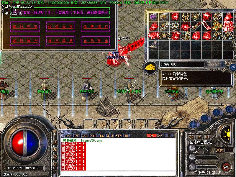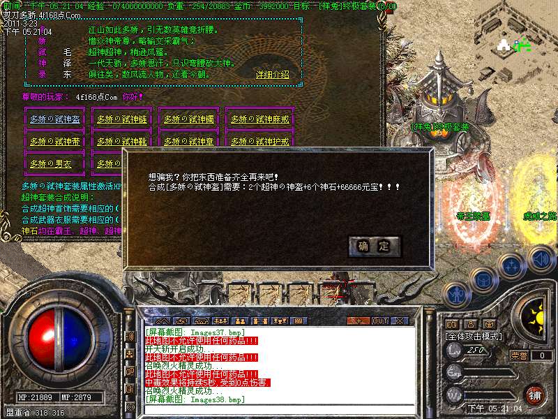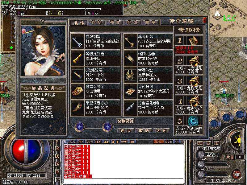 装备回收:装备回收分为两个层次,经验+元宝同时获得,爽爽爽