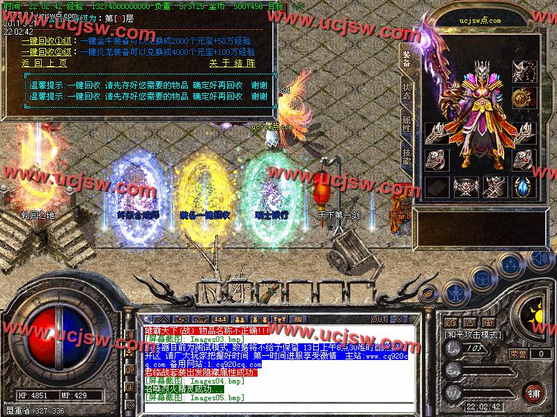 【特色功能】:本服务器独家增加雄霸武器,雄霸衣服,只需用炎龙装备合成无须购买。