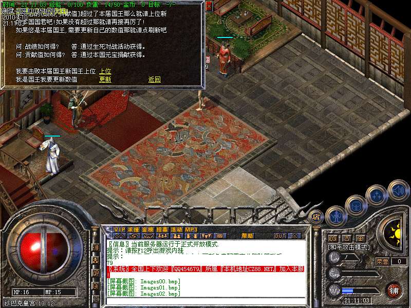 3.国王可任意输入玩家名字给玩家 赦免红名,发放救济钱,召唤2只随身侍卫,独立的国家打宝地图,消耗军事力量,政治能力点来随意召唤BOSS供给国家国