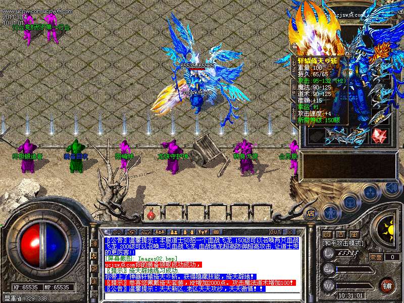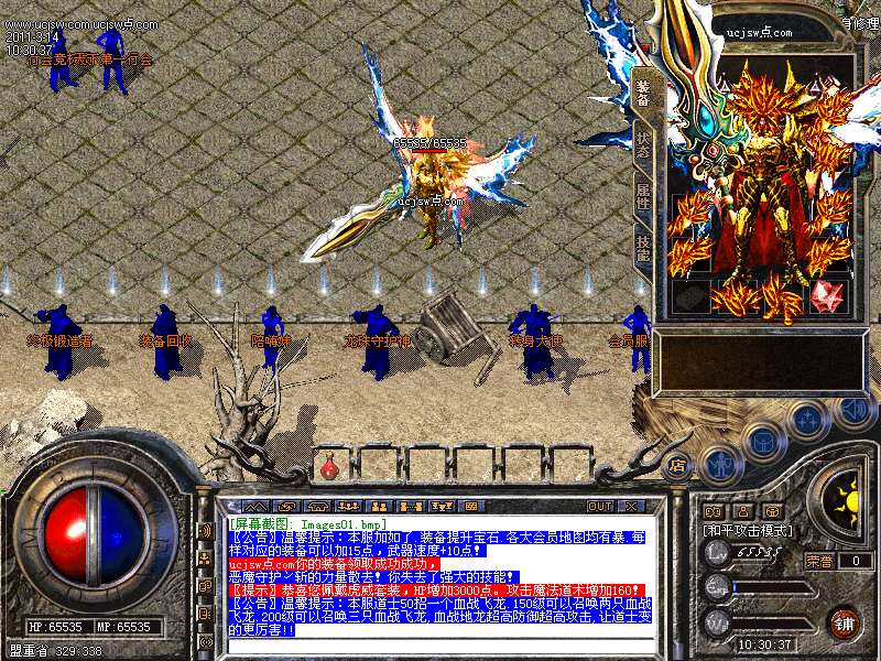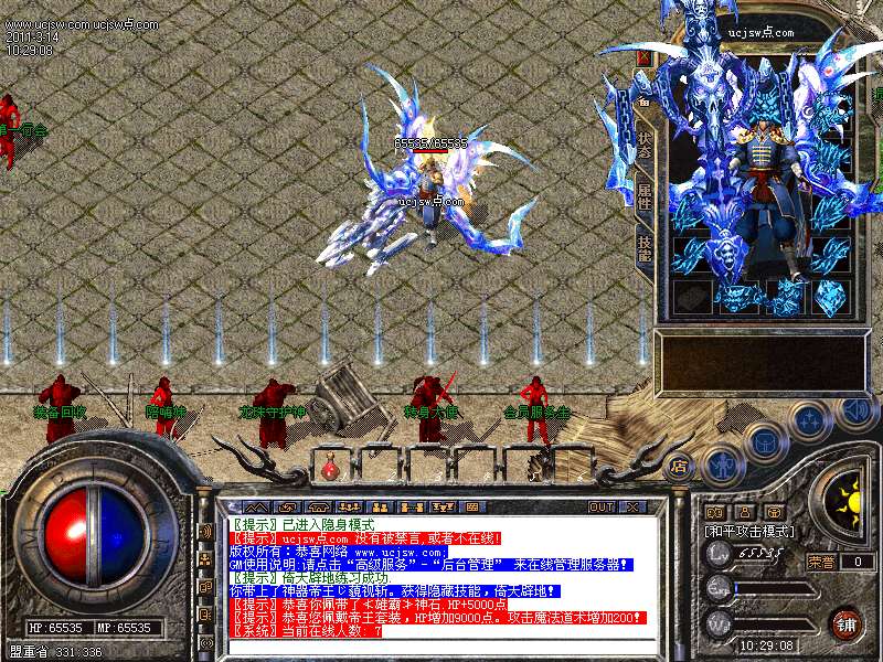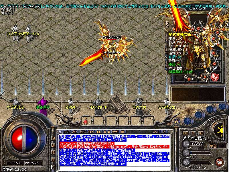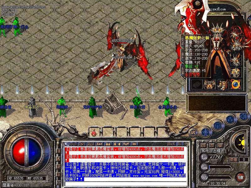 温馨提示:金牛装备以上头盔复活,戒指麻痹,神戒护身,具体情况自己游戏里体会!!