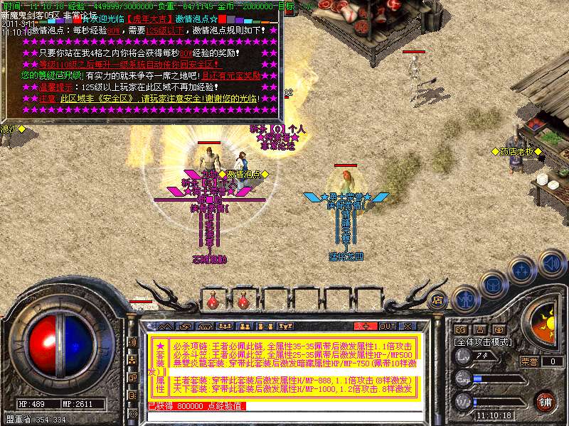欢迎来到[2011年最值得玩的无英雄内挂版]!开区第二天全体行会集体拿沙,第一任沙城行会奖励10万元宝,以后每次拿沙奖励5W元宝!官方主页:『登陆器点击连接』