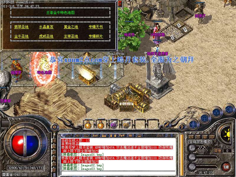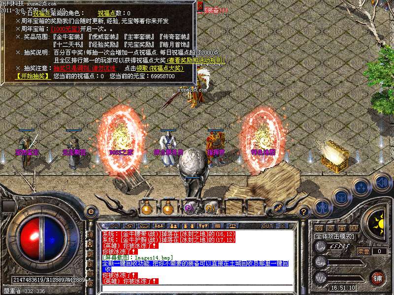[255,249]最新增加盛大最新祝福点功能.土城有周年宝箱.开启宝箱获得祝福点.每次祝福点最多的可以获得当日祝福点大奖-杀戮勋章-狂暴斗笠-狂暴神石..属性超强