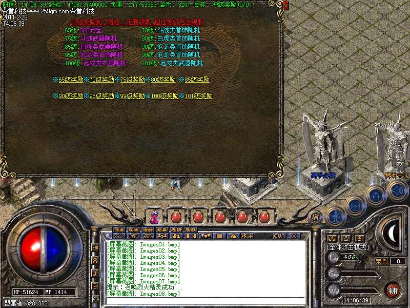 65级奖励500元宝