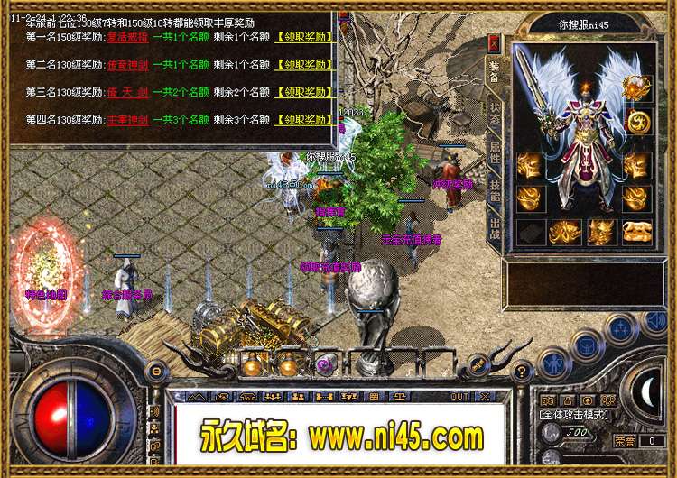 [升级奖励]:当你练到85级之后都可以在土城领取升级奖励处领取升级奖励.注意只有到达指定等级方可领取.超过等级将不可领取.切记!切记!切记!切记!切记!切记!切记!www.ni45.com