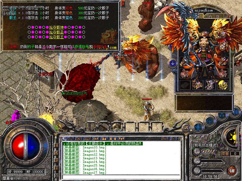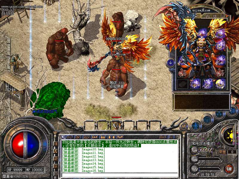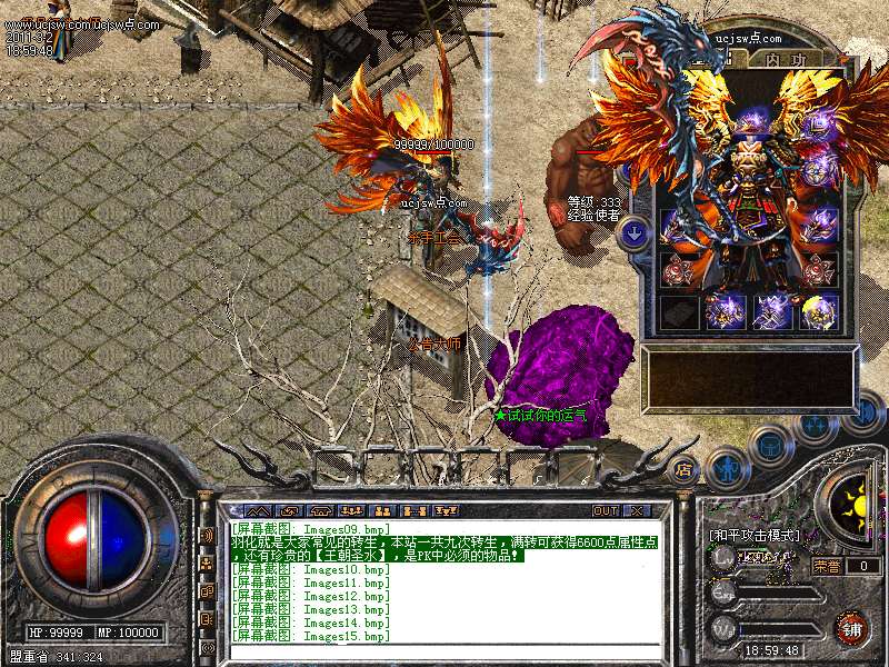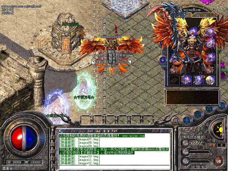 羽化就是大家常见的转生,本站一共九次转生,满转可获得6600点属性点,还有珍贵的【王朝圣水】,是PK中必须的物品!