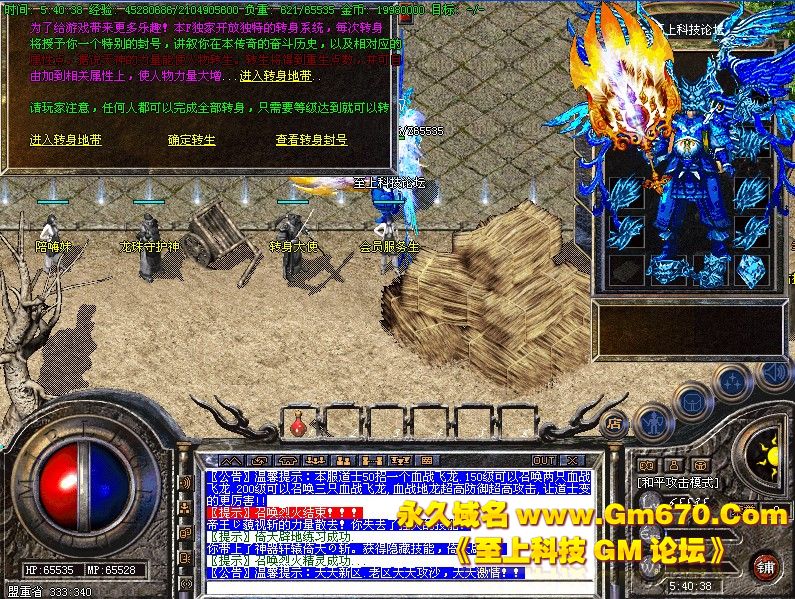 【转生系统】普通转生系统在传送员身上可以到各个地图做,但是我们推荐您使用超转系统,255次的完美超级转生系统,绝对震撼,当然我们也控制了每次转生给的属性点,虽然是255次转生 但绝对变态!.