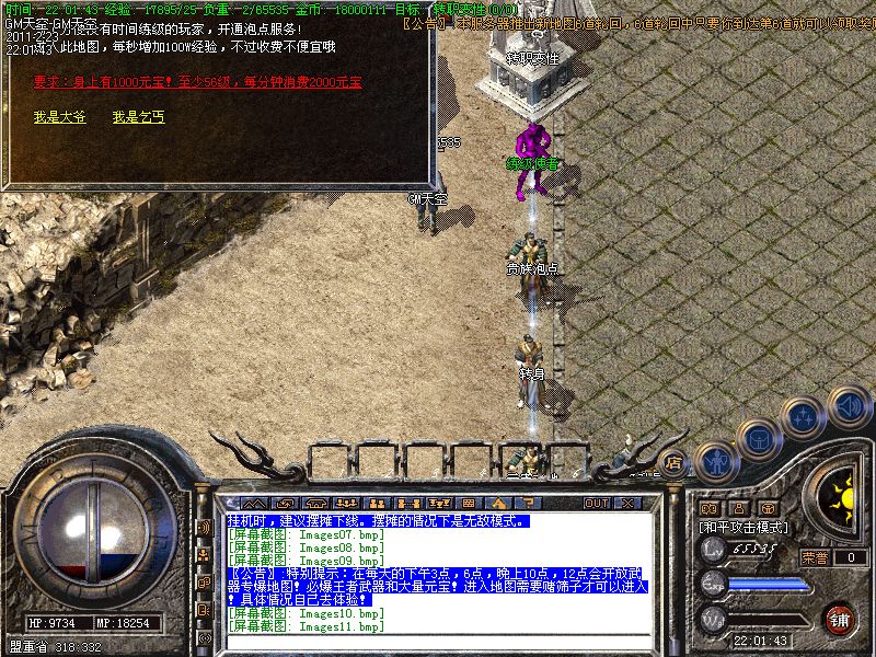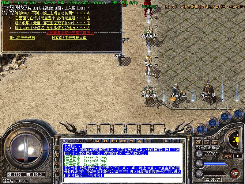 新增元宝使者,刷新地点,土城药店旁边。每60分钟刷新一次,元宝爆满地。