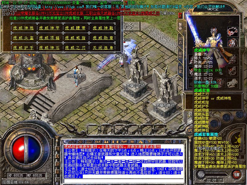 立即下载GM天空完美仿盛大v1.85绿色庄园版虎威荣耀金牛圣殿装备升星五转