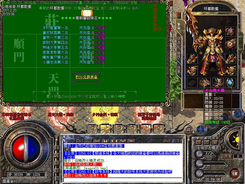 【新手上线】平衡了三职业!人物上线就送新技能和大量财富包括元宝!升级无需打怪!泡点直接到顶级!.