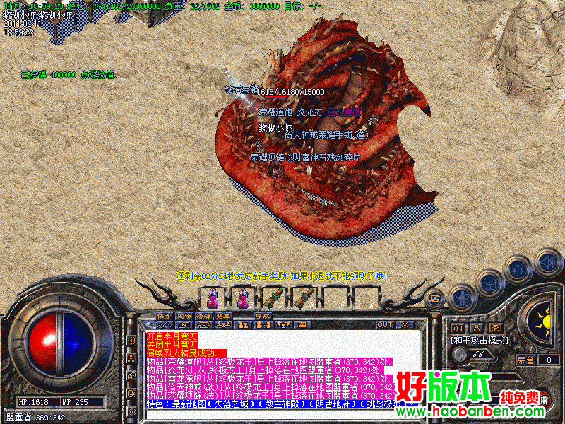 赤月老穴:暗之赤月恶魔刷新60分钟.爆金牛.炎龙.荣耀,倚天装备
