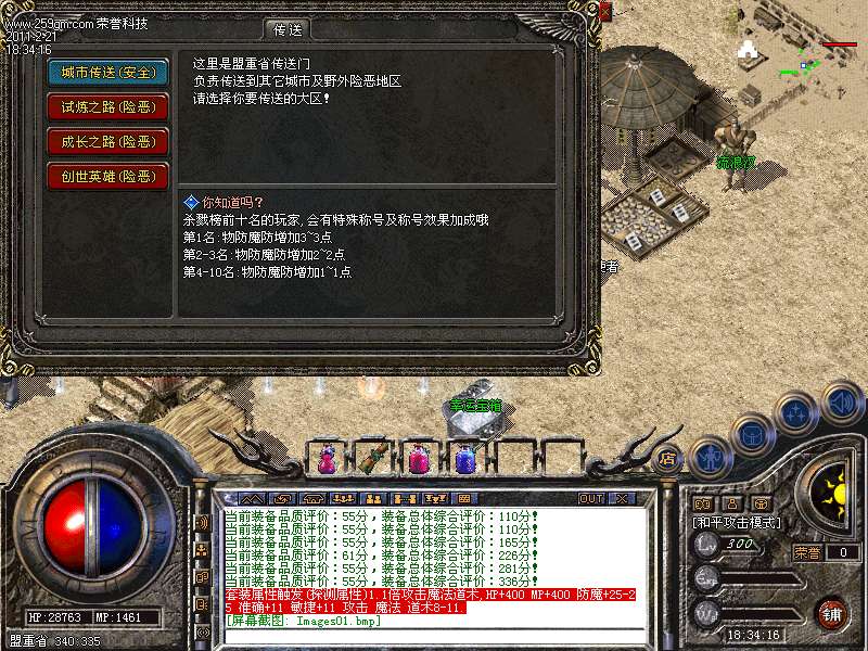 9.开区后第三天全服统一攻城,无需提交头像,首任沙城主可获得100000元宝奖励