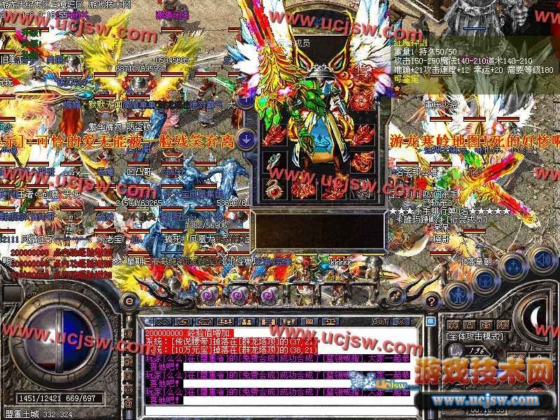 ⑥-装备属性:套装属性好.本服经过专业技术定做.绝对长久耐玩.属性绝不变态.终极群龙衣服防麻痹属性+50%防爆,群龙武器超强吸血加传送属性!.