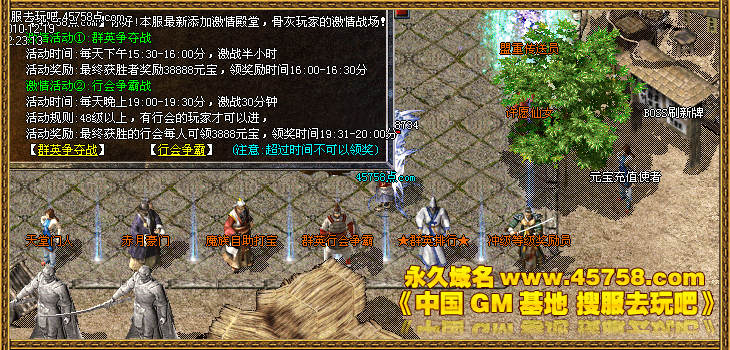 每天晚上19点00分,群英行会争霸,每人奖元宝3888个.!