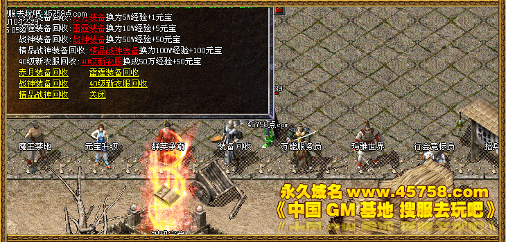六、本服设立装备回收系统,所有中,高级装备都可以作元宝或者经验回收,这也是非RMB玩家的很重要的赚钱途径哦。35级技能