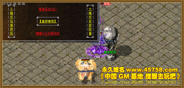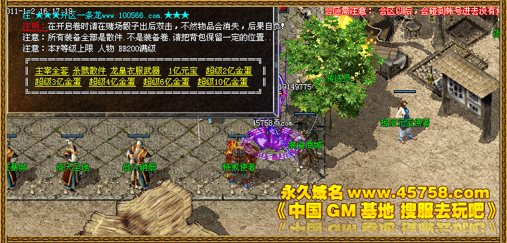 *★★★★★★★★★★ 地 图 介 绍 ★★★★★★★★★★★★★★★★1.新增【大开杀戮】【龙皇圣地】【传奇神殿】【热血魔窟】★★★★★★2.此新增地图绝对可爆全服所有装备装备,包括特殊戒指和物品★★★★★★3.此新增地图全部分为两层,第二层的爆率可比第一层高的多哦★★★★★★4.【顶级狂爆】荣耀风暴虎威装备狂爆,第二层可爆出圣龙装备★★★★★★5.【圣龙殿堂】荣耀风暴虎威圣龙狂爆,第二层可爆出圣龙装备★★★★★★6.【主宰殿堂】荣耀虎威圣龙主宰狂爆★★★★★★7.【战火硝烟】这里是新手的天堂,在这里可以打普通装备回收★★★★★★8.郑重声明,本服所有装备绝对都可以爆出,包括特殊物品,特★★★