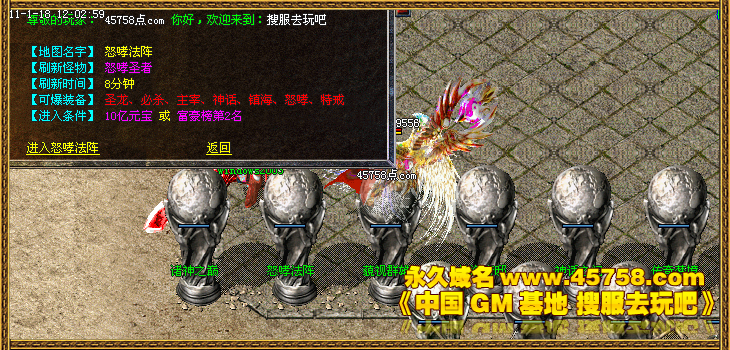 【财神送宝】:每天19.30将会把顶级装备洒落在周围