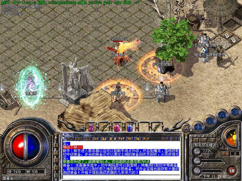新手:新手进入服务器以后可以到新手泡点升级,然后到魔龙,雪域获取初中级装备。多余的装备还可以通过土城的装备回收员回收,从而获得元宝。