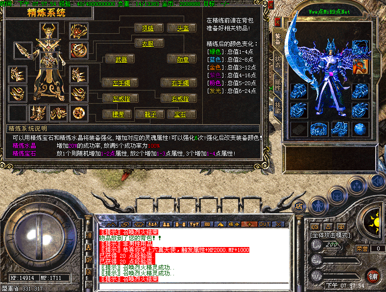 碎炼系统:为你的装备升级加星争加属性,如果有一把趁手的兵器时可以去升级,属性很可观。