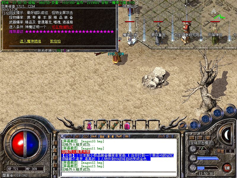 [地图亮点] 天堂门、十二生肖、狂暴泉、赤月豪门、禁地地宫、蓝魔基地、魔神绝地、龙神大殿等