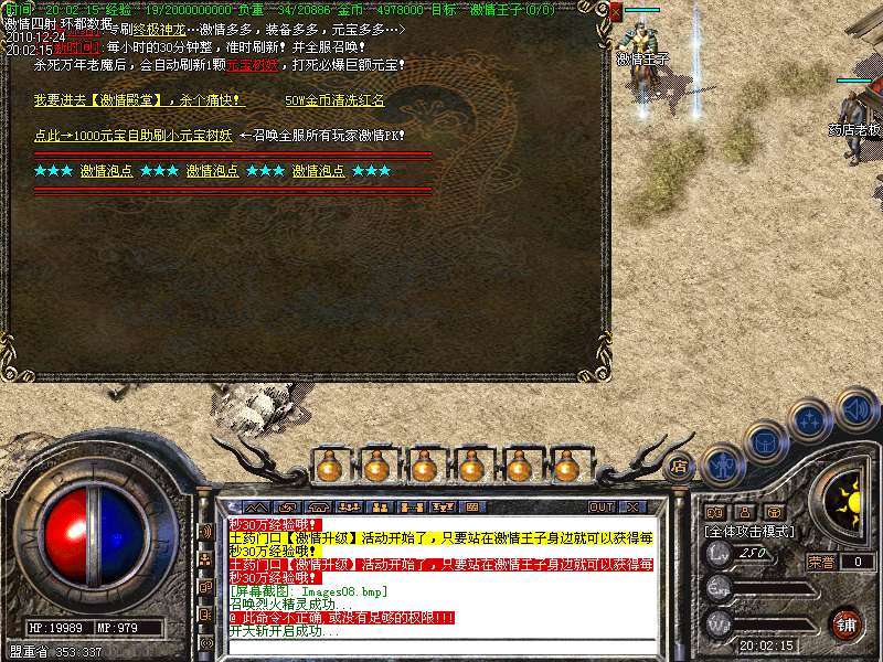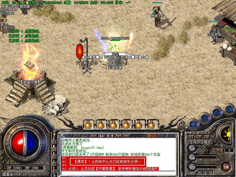 3.新区开放3天拿沙 奖励为88888元宝 在土城安全区NPC领取!