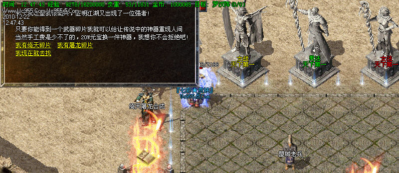 服务器开放了装备合成功能,可以拿中级装备合成高级装备,详细介绍见土城左下角NPC!