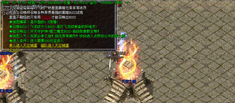 新增加地图:天空之城(最适合召唤师召唤各种异界最强的黑暗BOSS试炼里面不刷怪的只有用<天空令>才能召唤出BOSS)!