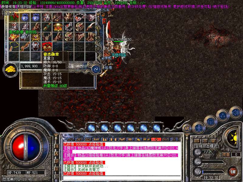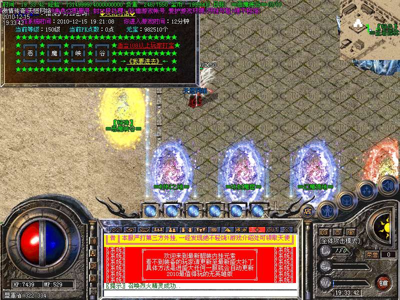 - ☉ V8引擎传奇端游【荒域专属单职业九大陆】Win一键端+配套补丁网站+架设教程