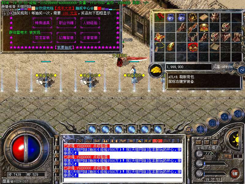 3.【超高爆率】:终极装备都有爆,各图每小时刷1只BOSS,娱乐抽奖抽高级装备几率可观!