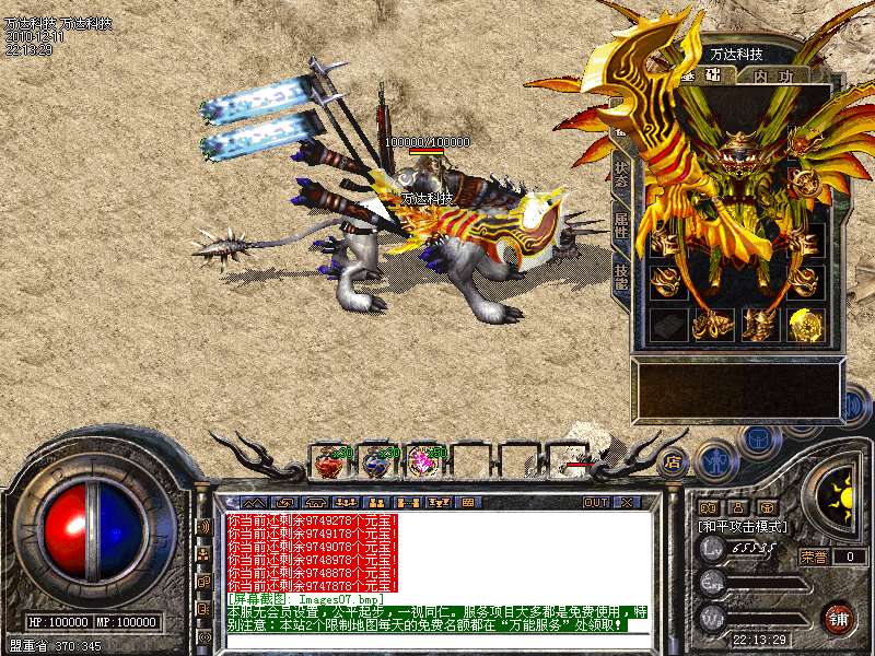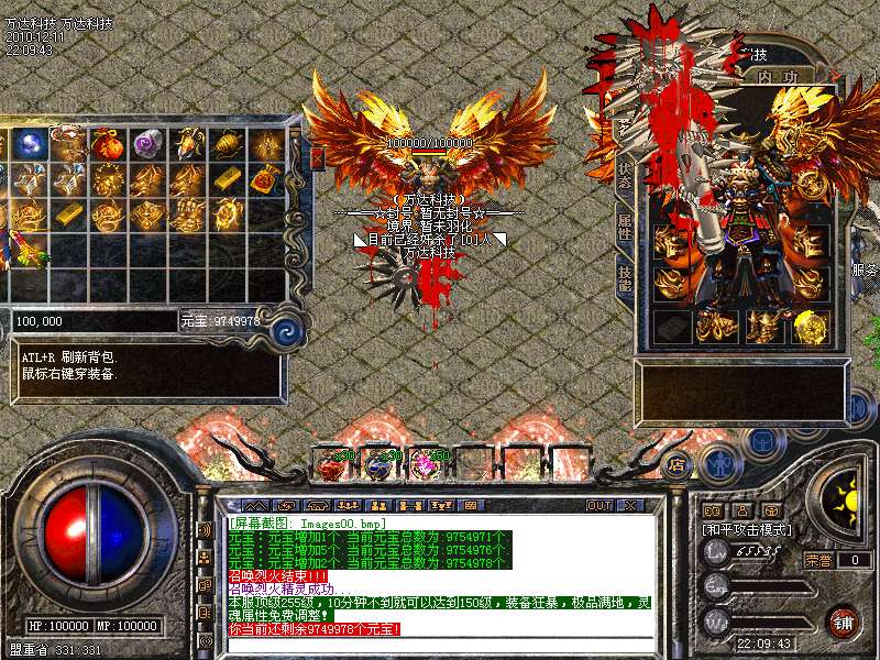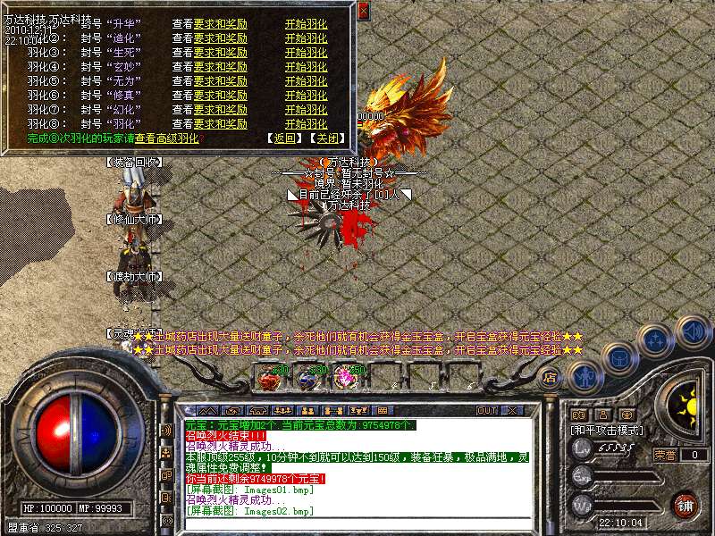 9.羽化就是大家常见的转生,本站一共九次转生,满转可获得6600点属性点,还有珍贵的【王朝圣水】,是PK中必须的物品!