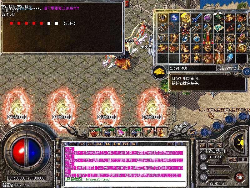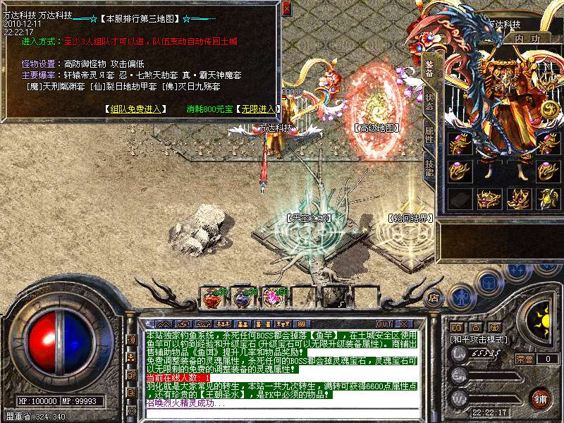 15.其他2套高级地图可以每天领取免费名额,也可以元宝进入,为本服务器高级地图,装备掉落的程度很高,是高级玩家打装备必去的地方!