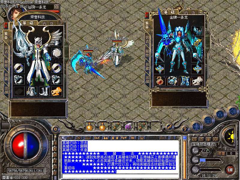 本服已更新最新装备与技能 血魄一击 荣耀套装 倚天套装 虎威套装 圣龙套装 主号英雄双连击