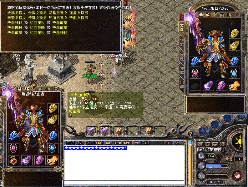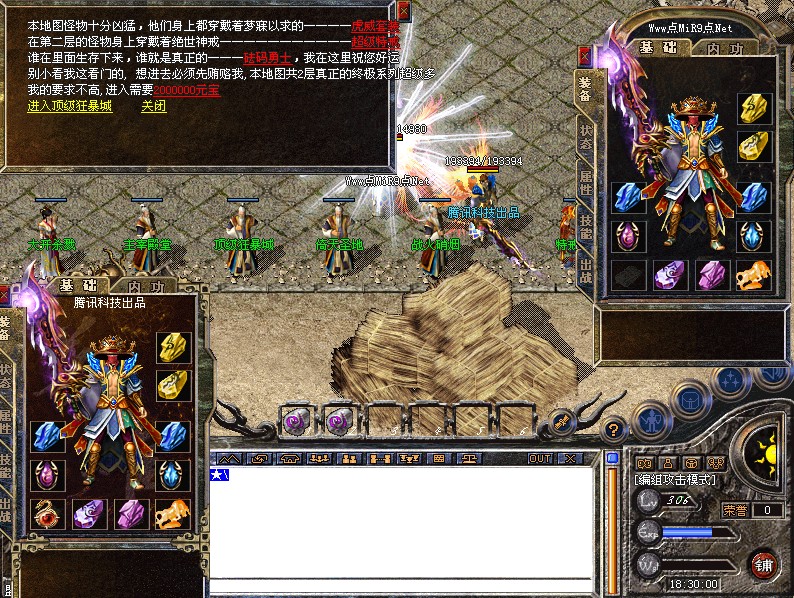 *★★★★★★★★★★ 地 图 介 绍 ★★★★★★★★★★★★★★★★1.新增【大开杀戮】【龙皇圣地】【传奇神殿】【热血魔窟】★★★★★★2.此新增地图绝对可爆全服所有装备装备,包括特殊戒指和物品★★★★★★3.此新增地图全部分为两层,第二层的爆率可比第一层高的多哦★★★★★★4.【顶级狂爆】荣耀风暴虎威装备狂爆,第二层可爆出圣龙装备★★★★★★5.【圣龙殿堂】荣耀风暴虎威圣龙狂爆,第二层可爆出圣龙装备★★★★★★6.【圣龙殿堂】荣耀风暴虎威圣龙狂爆,第二层可爆出圣龙装备★★★★★★7.【战火硝烟】这里是新手的天堂,在这里可以打普通装备回收★★★★★★8.郑重声明,本服所有装备绝对都可以爆出,包括特殊物品,特★★★