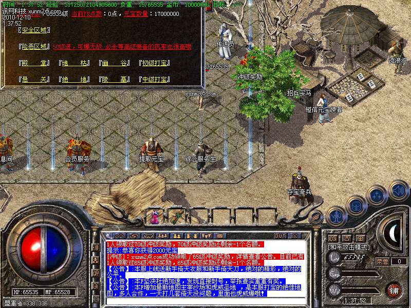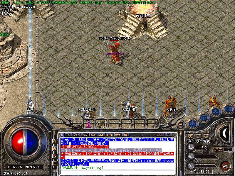 【公告】:新手打宝建议直接去万人激情打宝,一秒4万经验,边打宝,边泡点。70级后可去四个终极地图,能爆出必杀,倚天装备以及各种物品。