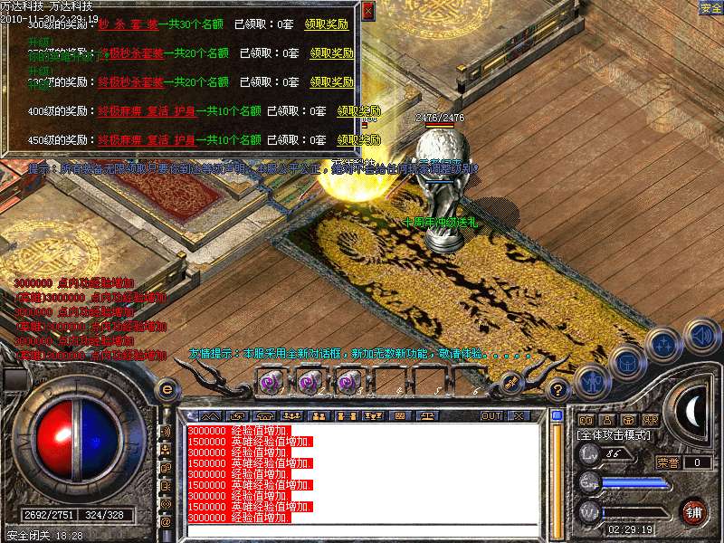10.升级速度 怪物爆率 装备属性 PK职业平衡性做了重大调整.调整了3个职业的平衡性!
