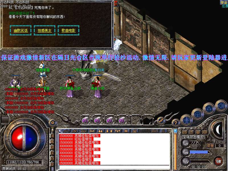 2.免费泡点每秒50W经验 PK免费泡点每秒100W经验 激情不断。
