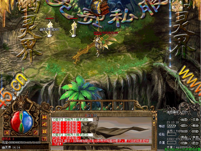 本站为了丰富玩家的游戏兴趣,新增幽灵界 ,全新地图、全新怪物,新增幽灵圣甲、鬼眼狂刀(鬼眼狂刀还可升级)两大新任务,超爽属性。一定是大家梦寐以求的终极物品 。并在幽灵界的九幽森林设爆65级至尊套装,九幽绝境设爆70级魔幻套装,全面加攻加防。但幽灵界怪物超猛,并具有麻痹人物属性,所以请大家小心前往。另新增任务地图九幽圣地,只要你能前往九幽宫杀死宫主必爆魔幻至尊装备 。具体方法请参看幽灵界装备任务导航!!